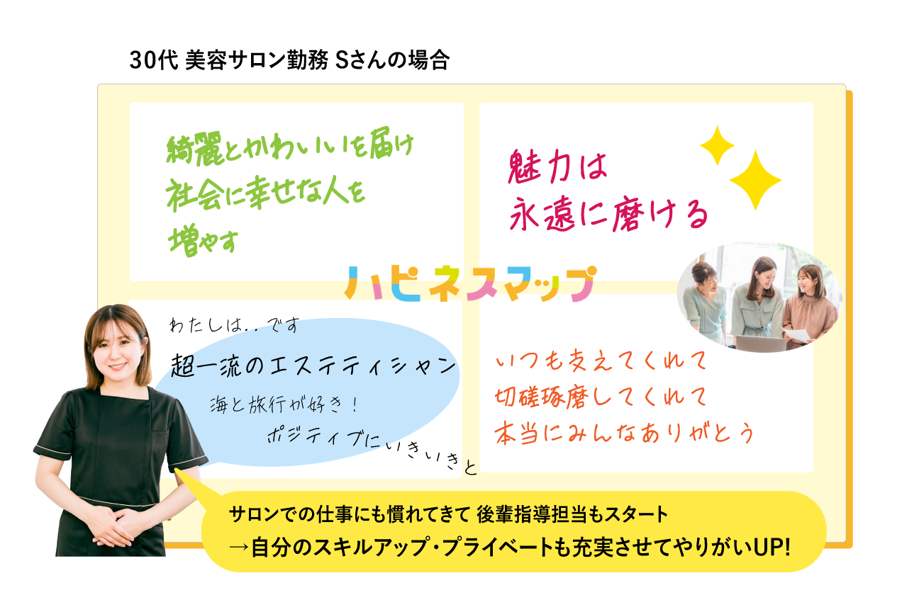ハピネスマップが誕生したのは今から10年ほど前。企業研修の最後に学びのまとめとして自分の好きな言葉や感謝の言葉を書いたシート作ってみようと始まりました。